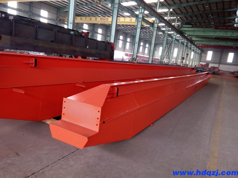 2)將小車停在行車的跨中,無沖擊地起升額定重量的1.25倍的負荷,在離地面高度為100-200mm處,懸吊停留時間不應(yīng)小于10min,并應(yīng)無失穩(wěn)現(xiàn)象,然后卸去負荷將小車開到跨端或支腿處,檢查單梁行車橋架金屬結(jié)構(gòu),應(yīng)無裂紋、焊縫開裂、油漆脫落及其他影響安全的損壞或松動等缺陷。